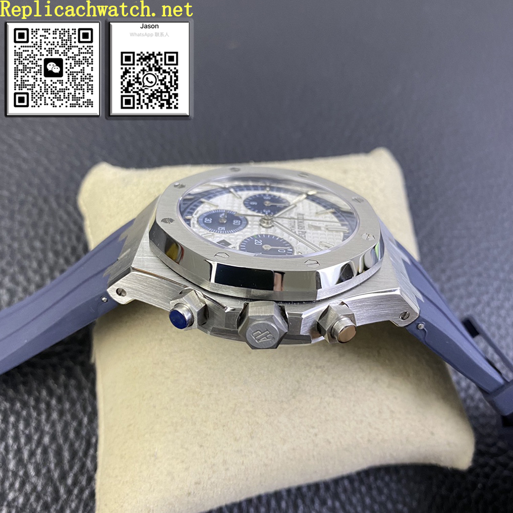 The replica incorporates the Royal Oak’s design elements including the signature dial pattern, applied markers, and chronograph sub-dials. However, the luminescence quality, dial printing precision, and hand finishing typically show noticeable differences from authentic models. The date function operates as intended, but the font and magnification may vary from genuine examples. The bracelet and clasp construction usually feature simpler mechanisms without the refined execution of authentic AP hardware. Where to buy Audemars Piguet Replica Watch Royal Oak Chronograph? Audemars Piguet Replica Watch Royal Oak Chronograph 26326ST.OO.D027CA.01 for sale.