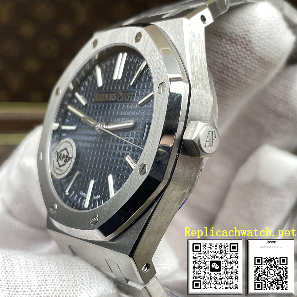 The Audemars Piguet Royal Oak with blue dial represents one of the most recognizable and influential watch designs in horological history. Originally designed by Gérald Genta in 1972, this timepiece revolutionized luxury watchmaking by introducing the first high-end sports watch in stainless steel. The signature blue “Tapisserie” dial, with its intricate geometric pattern, changes character from deep navy to vibrant azure depending on light conditions, creating a mesmerizing visual effect that has become synonymous with the Royal Oak identity and luxury sports watches. How much to buy fake Audemars Piguet Royal Oak Blue Dial? Order Audemars Piguet Royal Oak Blue Dial online.