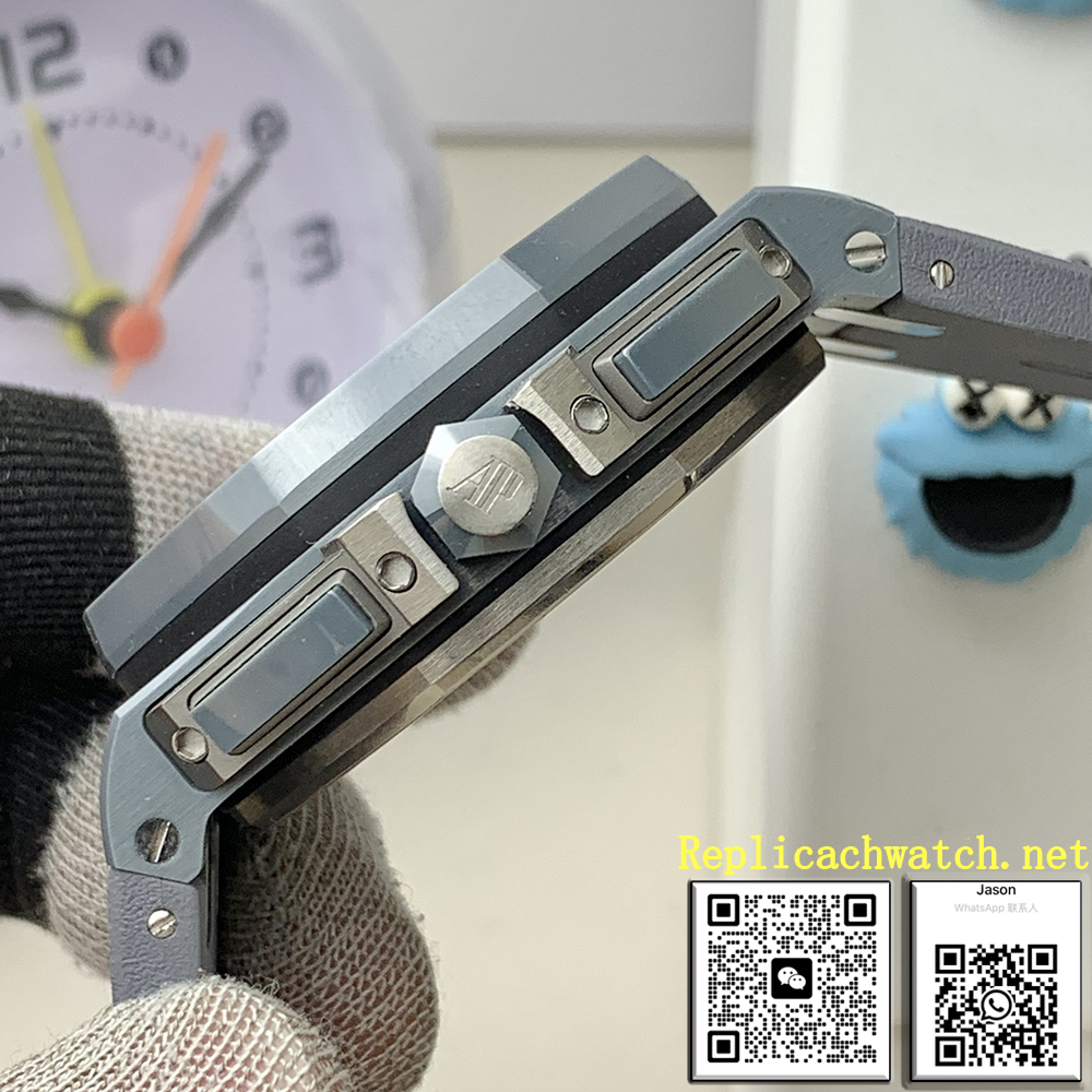 The Audemars Piguet Royal Oak Offshore Chronograph 26405TI represents a masterpiece of material science, featuring a 44mm case crafted entirely from brushed titanium. This prestigious timepiece combines the lightweight durability of grade 5 titanium with the sophisticated aesthetics that define the Offshore collection. The grey “Méga Tapisserie” dial creates a harmonious monochromatic appearance that emphasizes the watch’s architectural lines while offering exceptional legibility. The use of titanium provides remarkable wearing comfort despite the watch’s substantial presence, making it ideal for both active lifestyles and formal occasions.