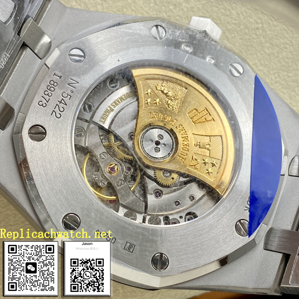 Powering the 15410 is the renowned self-winding Caliber 3120, a complete manufacture movement developed and produced entirely by Audemars Piguet. This sophisticated mechanism features a bidirectional winding system with a 21k gold oscillating weight and delivers an impressive 60-hour power reserve. Operating at 21,600 vibrations per hour, the movement incorporates a variable inertia balance with eight inertia blocks for enhanced precision adjustment. The exquisite finishing, visible through the sapphire case back, includes traditional decorations such as Côtes de Genève, circular graining, and hand-chamfered bridges.