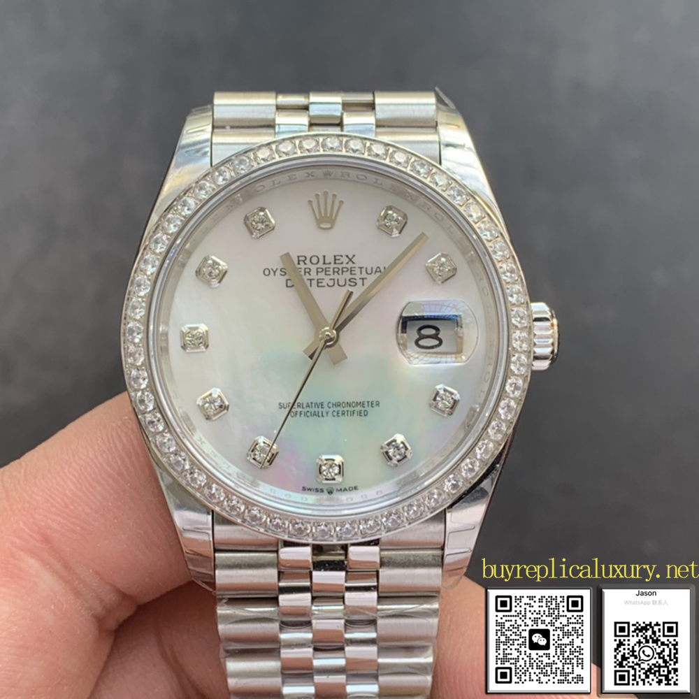 La montre Rolex Datejust 36 nacre sertie de diamants est l'une des interprétations les plus exquises de l'esthétique intemporelle et de l'élégance luxueuse de la marque. Depuis ses débuts en 1945, la Datejust a défini la silhouette d'une montre classique avec son affichage de la date par lentille cyclope et sa lunette cannelée. Le diamètre du boîtier de 36 mm est considéré comme la "taille d'or", offrant une présence parfaitement équilibrée sur les poignets des hommes et des femmes. Il incarne l'attrait unisexe de la montre, servant de compagnon élégant aux messieurs et de trésor luxueux aux dames. Où acheter une fausse rolex Sky-Dweller ? Où acheter une fausse rolex Yacht-Master ? Fausse montre Rolex Datejust, Réplique montre Rolex Datejust.