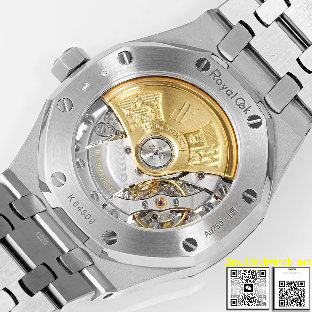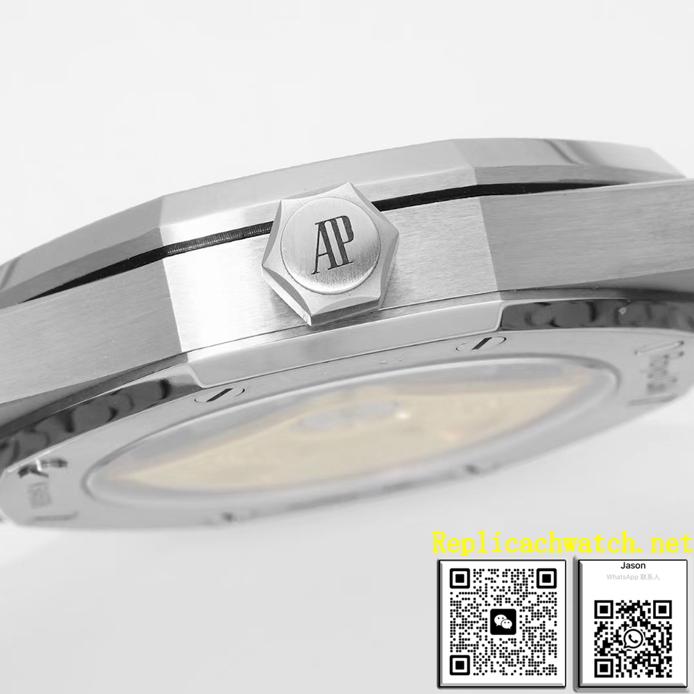 ロイヤルオーク フロステッドゴールド」は、熟練した職人が、ダイヤモンドがセットされた伝統的なハンマーツールを使い、完璧なフロステッド仕上げを施すためにさらに時間を費やすなど、卓越したクラフツマンシップが要求されます。この工程では、ロイヤル・オークのシャープなエッジと幾何学的なフォルムを維持しながら、ケースとブレスレット全体に均一なフロスト加工を施すため、驚くべき精度が要求されます。この丹念な手作業により、ステンレススティールは光や見る角度によって表情を変える、きらめく傑作へと生まれ変わったのです。 どのように高品質のロイヤルオーク時計を得るには?ロイヤルオークレプリカ時計 グレーダイヤルとステンレス鋼をつや消し 販売。
