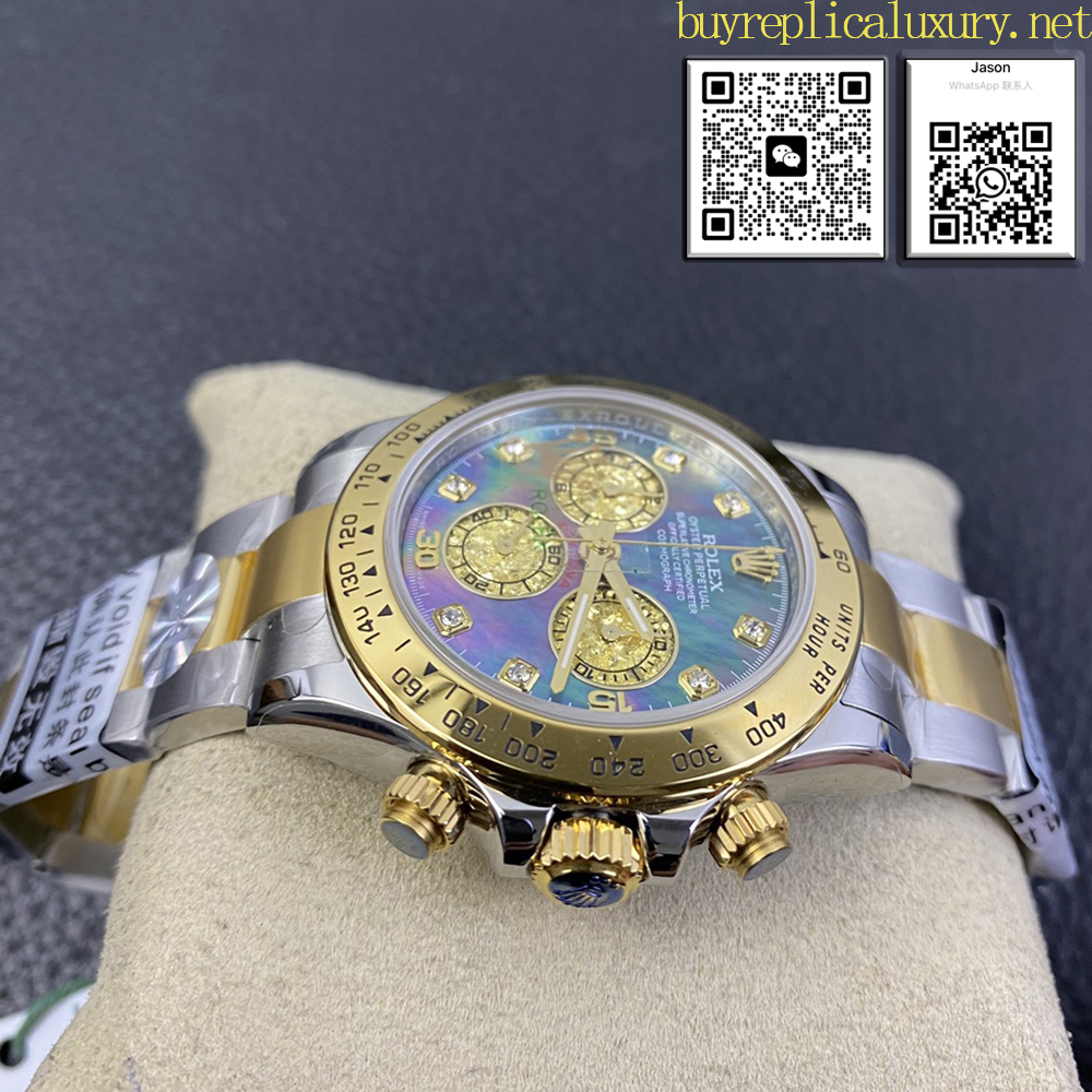 ロレックス・デイトナの豊かな系譜の中で、ツートーンモデルはスティールのスポーティな魅力とゴールドのラグジュアリーなエレガンスを本質的に融合させている。極めて希少なブラックマザーオブパールの文字盤と組み合わせることで、クラシカルな枠組みの中に反骨精神と芸術的センスを具現化した特別な作品が誕生する。伝統的なツートンカラーのデイトナという従来のイメージを打ち破るこのタイムピースは、アスリートの情熱、素材の華麗さ、そして自然の神秘的な虹色の輝きをひとつに融合させ、ユニークな個性とラグジュアリーなテイストを追求するコレクターの中心的存在となっています。