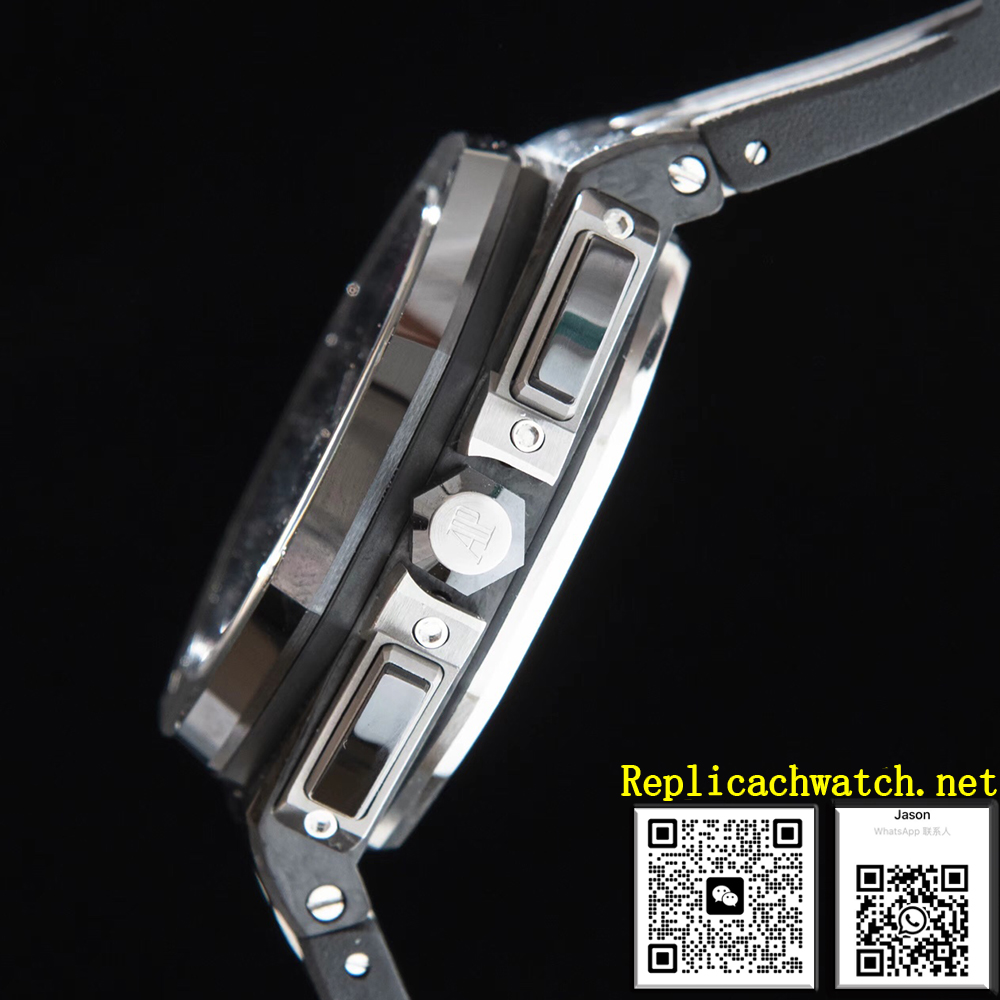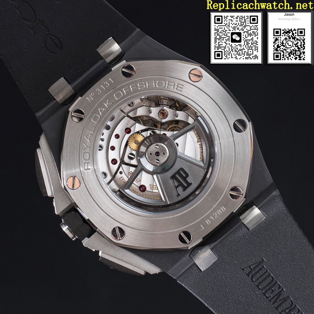 오데마 피게 로열 오크 오프쇼어 크로노그래프 26405CE는 블랙 세라믹과 단조 카본을 정교하게 결합한 소재 과학의 획기적인 성과로 탄생했습니다. 44mm 케이스는 블랙 세라믹 베젤, 푸쉬피스, 케이스백으로 구성되어 있으며, 미드 케이스는 단조 카본으로 제작되어 시계마다 다른 독특한 시각적 질감을 연출합니다. 이 소재 조합은 혁신을 향한 AP의 노력을 보여주며, 탁월한 내구성과 가벼운 착용감, 그리고 권위 있는 오프쇼어 컬렉션에서 차별화되는 독특한 미학을 제공합니다. 오데마 피게 시계 복제품은 어디에서 구입하나요? 오데마 피게 위조 시계 Royal Oak Offshore 26405CE.OO.A002CA.02를 주문하세요.