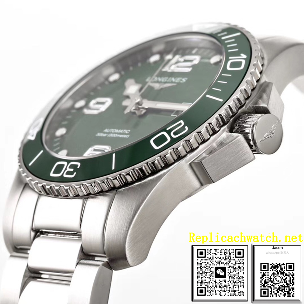 The green sunray dial creates a dynamic visual effect that shifts from deep emerald to brilliant shimmer depending on light conditions. Large applied numerals filled with Super-LumiNova ensure excellent low-light visibility, while the characteristic HydroConquest crown guards provide both protection and visual identity. The watch’s balanced proportions and polished/brushed finishing make it equally suitable for professional diving and casual wear. Where to buy replica Longines HydroConquest Watch Automatic Green Dial? Order Longines HydroConquest Watch Automatic Green Dial online.