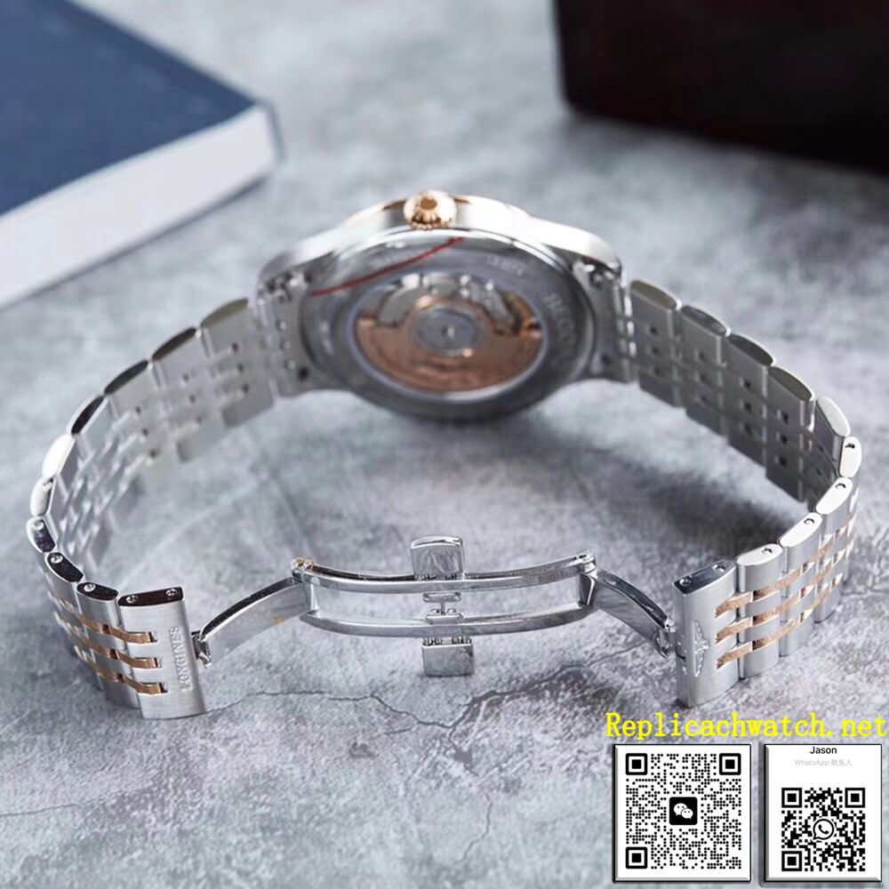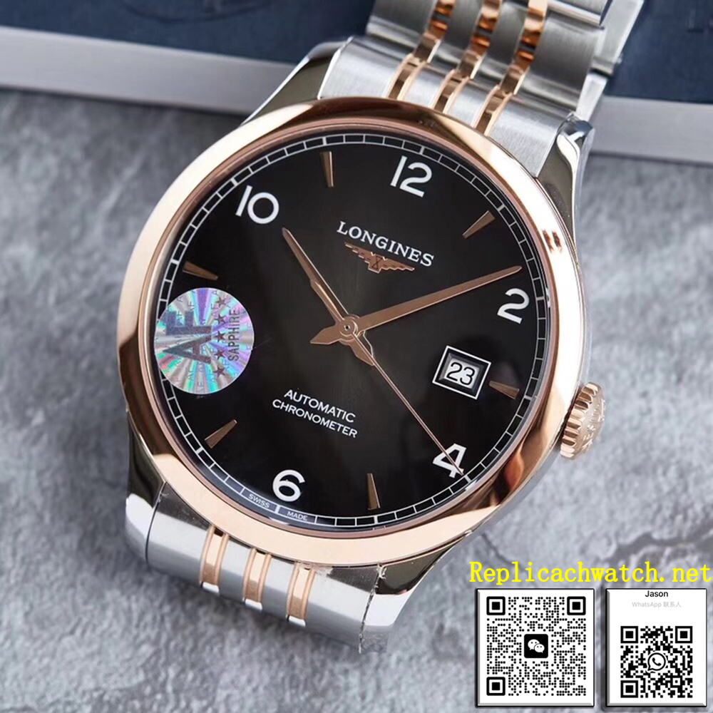 This replica timepiece draws inspiration from the authentic Longines Record collection, capturing the essence of its sophisticated aesthetic. The combination of rose gold PVD coating against a black dial creates a striking contrast that mimics the luxury appearance of genuine models. The 40mm case maintains balanced proportions suitable for various wrist sizes, while the applied markers and faux Roman numerals attempt to replicate the refined detailing of the original timepiece. How to buy Longines Record Replica Watch online? Longines Record Replica Watch For Sale the best quality for you.
