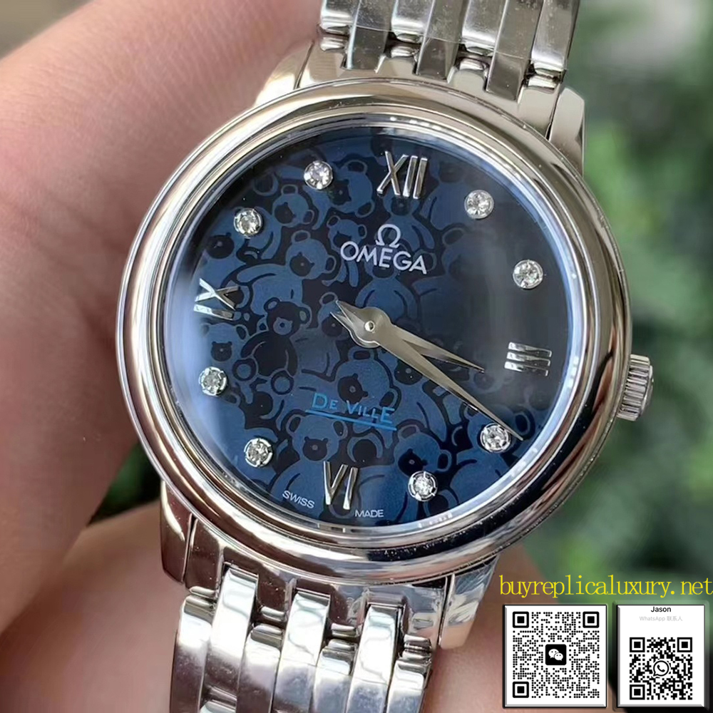 The De Ville Prestige Orbis is a unique model paying tribute to the critical eye care provided by Orbis International and its Flying Eye Hospital. Inspired by the teddy bear that Omega donates to every young patient, the lacquered blue dial features a teddy bear pattern, while the caseback is embossed with a specially designed teddy bear logo.