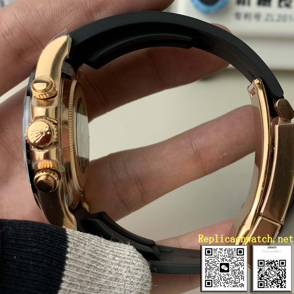 The Oysterflex bracelet represents a significant innovation in both comfort and durability. While appearing as a sophisticated black rubber strap, its core contains a flexible titanium and nickel alloy metal blade, providing outstanding stability and strength. The bracelet is equipped with an Oysterlock folding safety clasp in 18k Everose gold, featuring the Easylink comfort extension system for a quick 5mm adjustment. This combination ensures a secure, comfortable, and modern fit that is resistant to environmental influences. How much to buy a Replica Rolex Daytona Watch 116515LN? The Best Replica Rolex Daytona Watch 116515LN Rose Gold Ivory Dial make for you online.